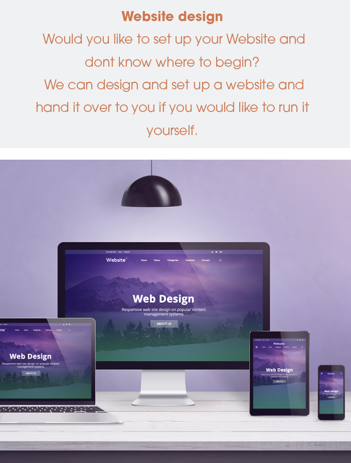 - We can set up your company website on a user friendly platform and design the layout and then hand the website over to you.